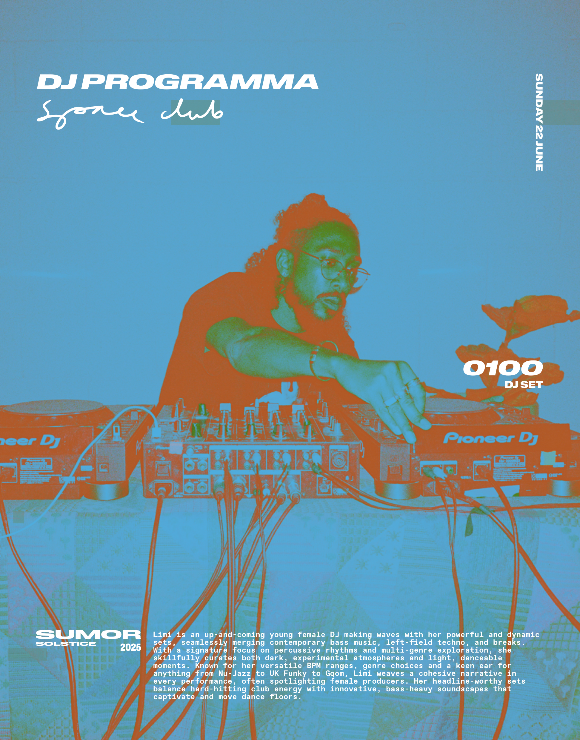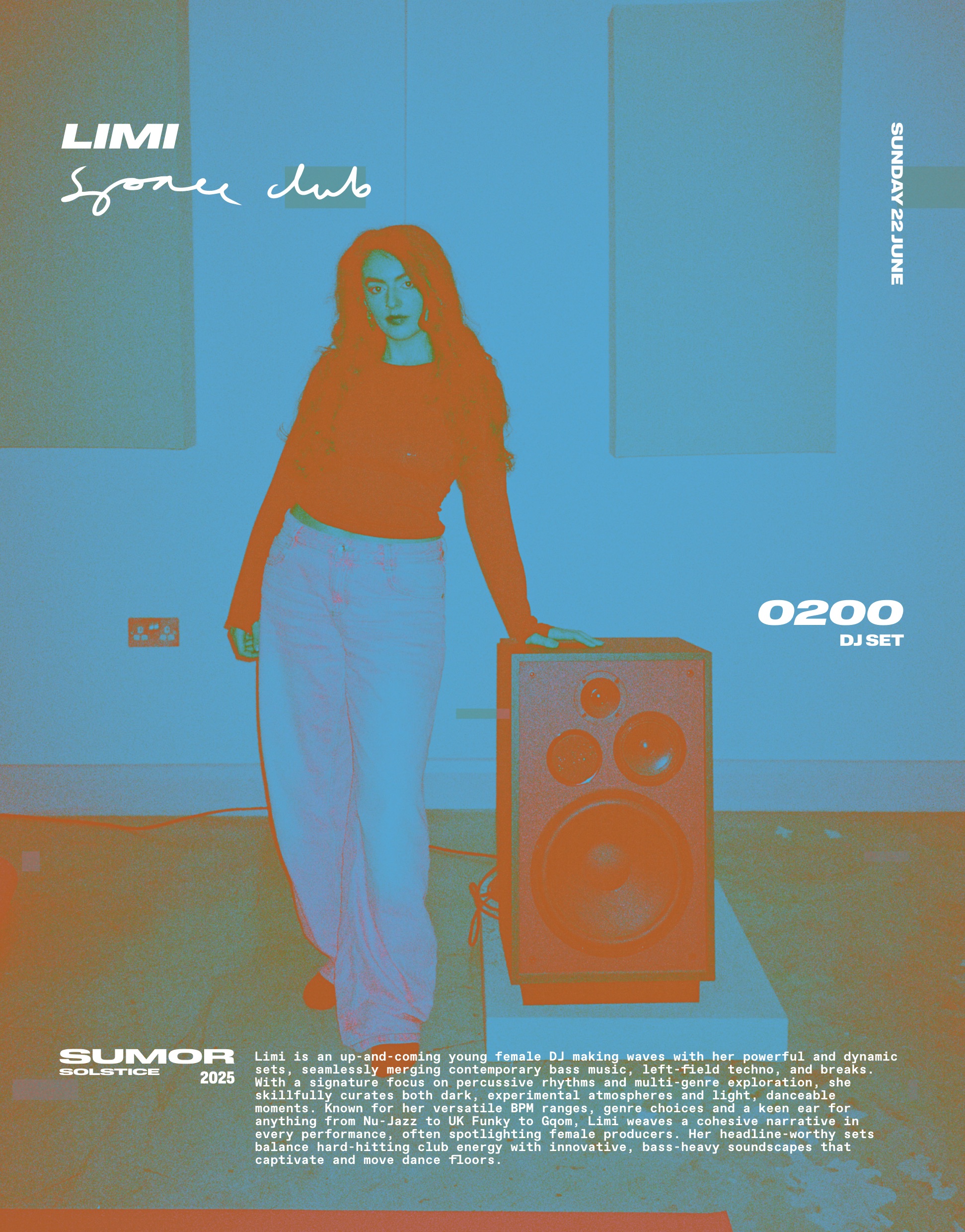 Limi is an up-and-coming young female DJ making waves with her powerful and dynamic sets, seamlessly merging contemporary bass music, left-field techno, and breaks. With a signature focus on percussive rhythms and multi-genre exploration, she skillfully curates both dark, experimental atmospheres and light, danceable moments. Known for her versatile BPM ranges, genre choices and a keen ear for anything from Nu-Jazz to UK Funky to Gqom, Limi weaves a cohesive narrative in every performance, often spotlighting female producers. Her headline-worthy sets balance hard-hitting club energy with innovative, bass-heavy soundscapes that captivate and move dance floors.