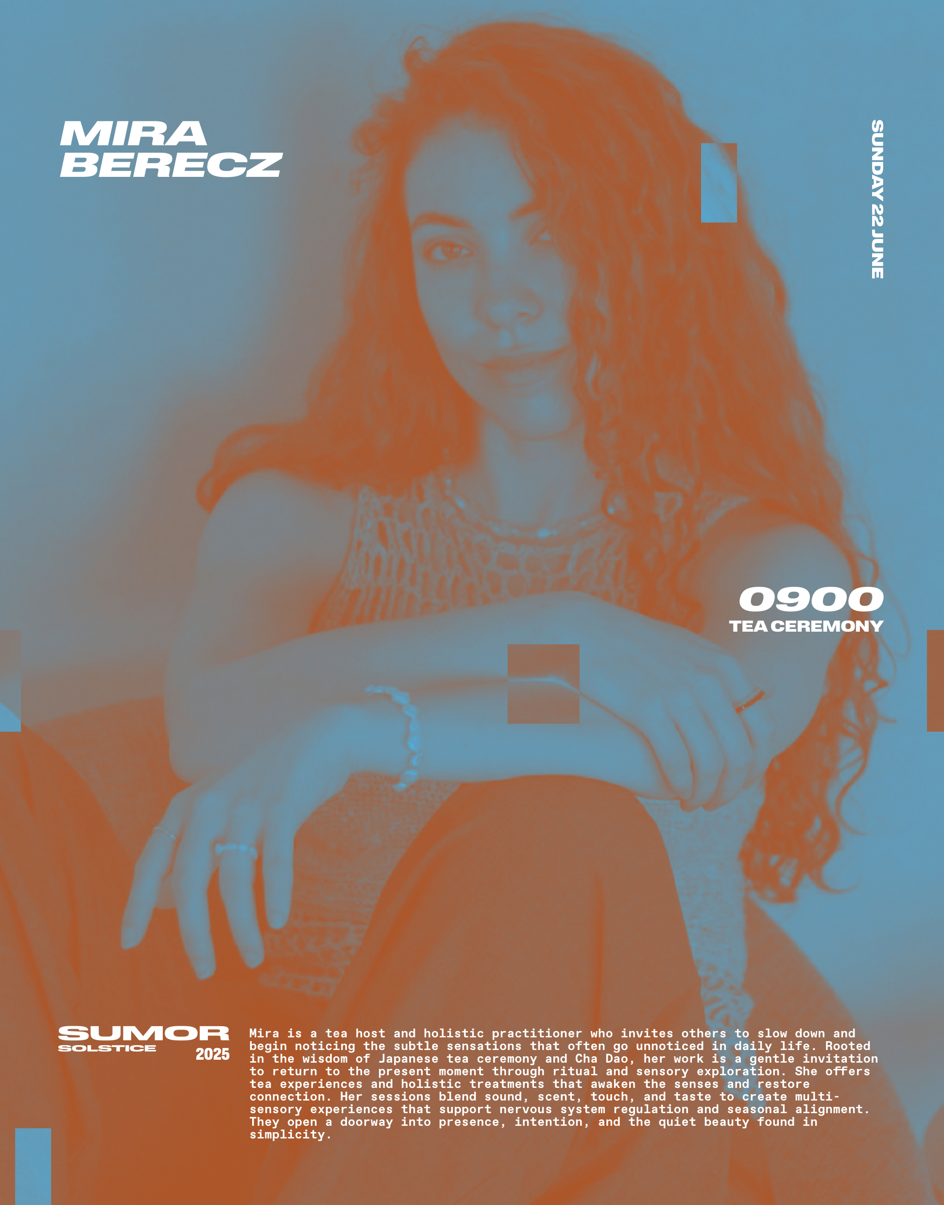 Mira is a tea host and holistic practitioner who invites others to slow down and begin noticing the subtle sensations that often go unnoticed in daily life. Rooted in the wisdom of Japanese tea ceremony and Cha Dao, her work is a gentle invitation to return to the present moment through ritual and sensory exploration. She offers tea experiences and holistic treatments that awaken the senses and restore connection. Her sessions blend sound, scent, touch, and taste to create multi-sensory experiences that support nervous system regulation and seasonal alignment. They open a doorway into presence, intention, and the quiet beauty found in simplicity.
