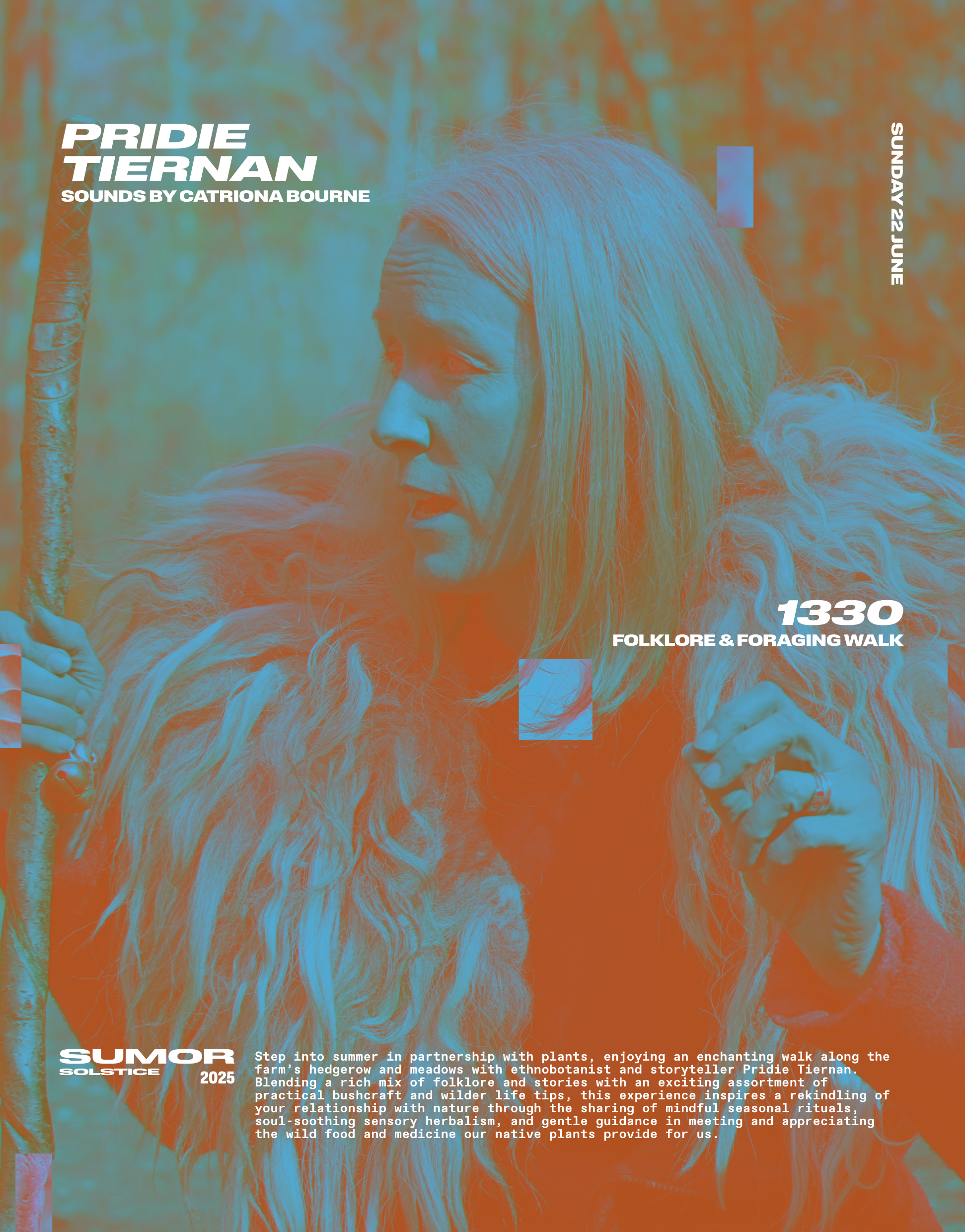 Step into summer in partnership with plants, enjoying an enchanting walk along the farm's hedgerow and meadows with ethnobotanist and storyteller Pridie Tiernan. Blending a rich mix of folklore and stories with an exciting assortment of practical bushcraft and wilder life tips, this experience inspires a rekindling of your relationship with nature through the sharing of mindful seasonal rituals, soul-soothing sensory herbalism, and gentle guidance in meeting and appreciating the wild food and medicine our native plants provide for us.