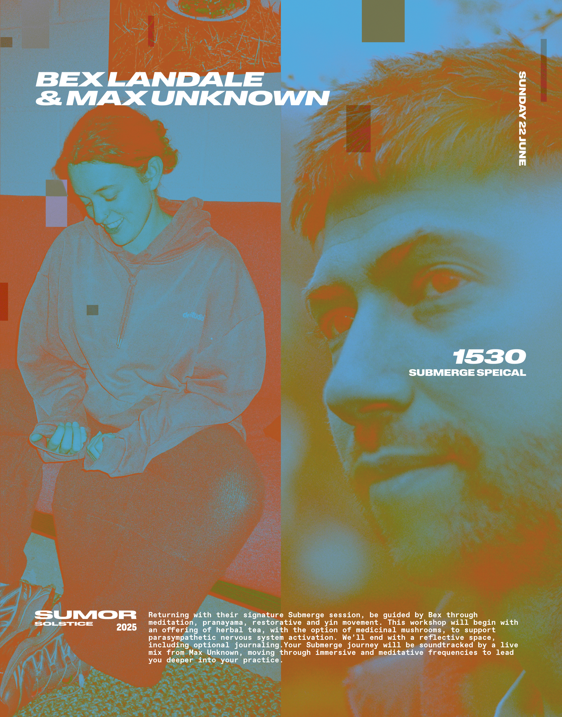 Returning with their 2nd Submerge session at Sumor, prepared to be guided by Bex through meditation, pranayama, restorative and yin movement. This workshop will begin with an offering of herbal tea, with the option of medicinal mushrooms, to support parasympathetic nervous system activation. We’ll end with a reflective space, including optional journaling.