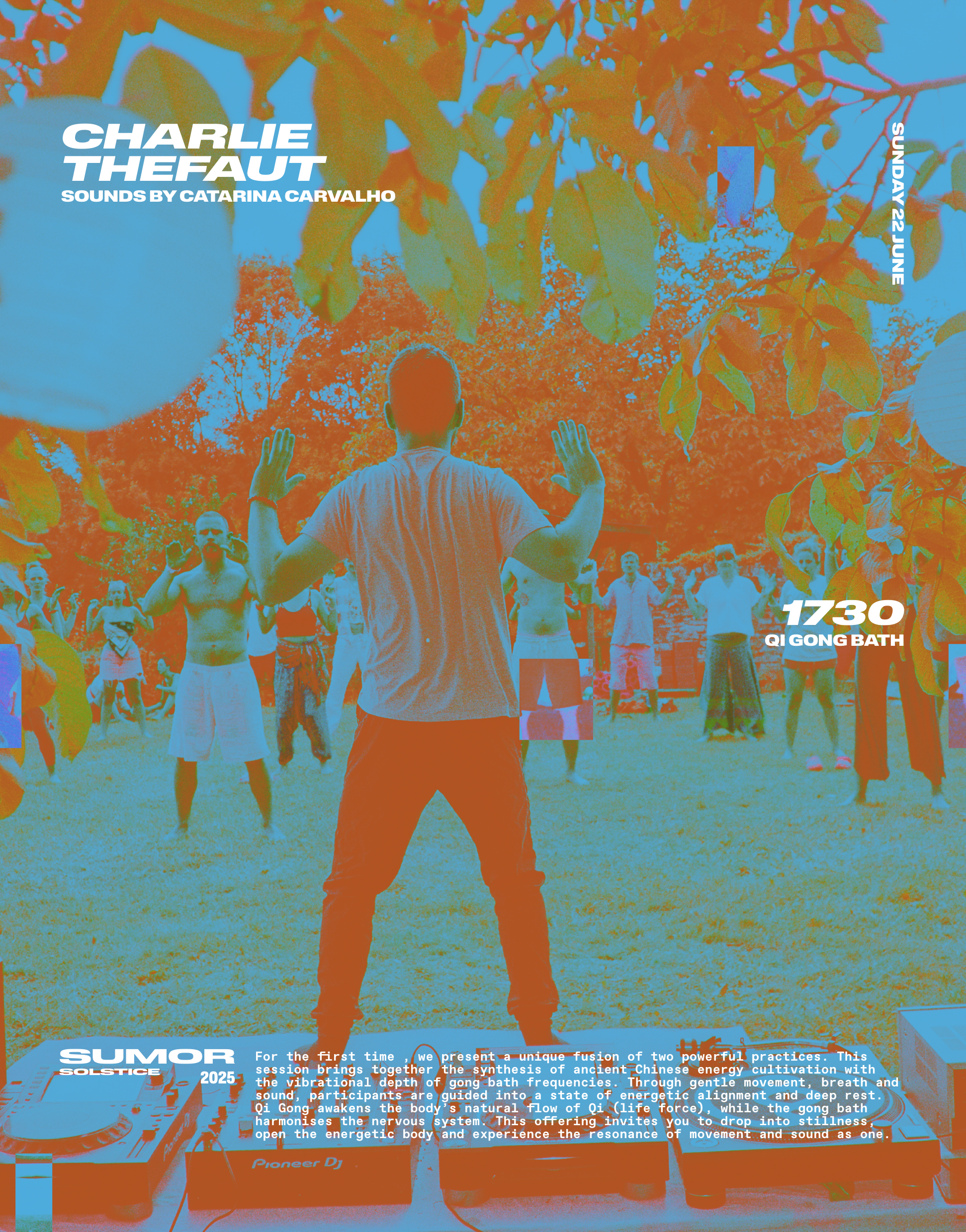 For the first time at Sumor, Om Being presents a unique fusion of two powerful practices. This session brings together two practitioners to explore the synthesis of ancient Chinese energy cultivation with the vibrational depth of gong bath frequencies. Through gentle movement, breath and sound, participants are guided into a state of energetic alignment and deep rest. Qi Gong awakens the body’s natural flow of Qi (life force), while the gong bath harmonises the nervous system. This offering invites you to drop into stillness, open the energetic body and experience the resonance of movement and sound as one.