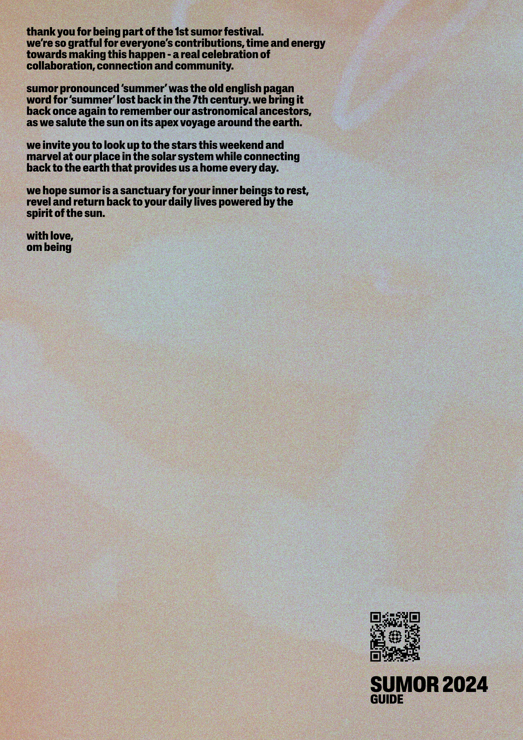 What a special weekend. Thank you so much for joining us and being part of the first chapter of Sumor festival. We're so chuffed with how it went and what we achieved together, while being treated by the spirit of the sun literally in our faces all weekend. Couldn't have asked for a better solstice.